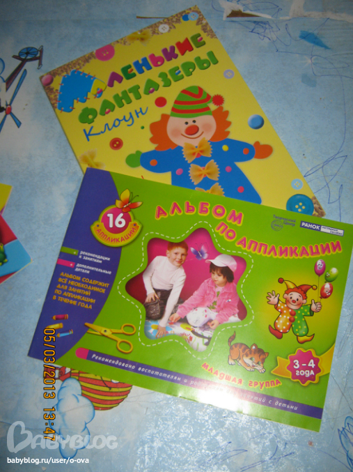 Купила альбом для аппликаций из-ва Ранок и Маленьких фантазеров. Купила в конце ноября. Фантазеров вот уже доделали на этой неделе, а аппликаций еще куча)