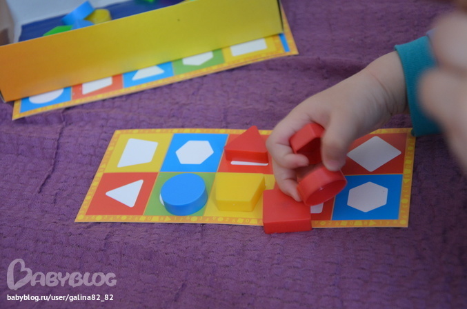 Играли в лото по своим правилам, просто раскладывали фигурки на соответствующие картинки не обращая внимания на цвет, так как цвета Дима еще плохо знает. Вот такое: