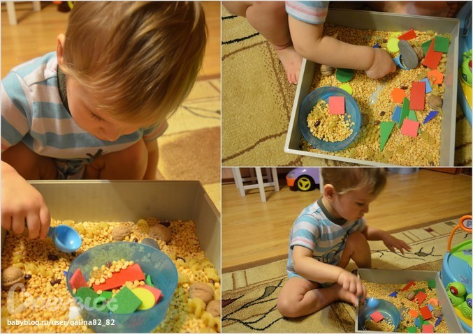 Еще была у нас сенсорная коробочка с различными формами из набора счетных материалов и самодельных деталек из фетра , но Дима ее не особо заценил, не понял, что я от него хотела, т.к. до этого мы в ней катали машинки. В общем сын играл с ней по своим правилам.