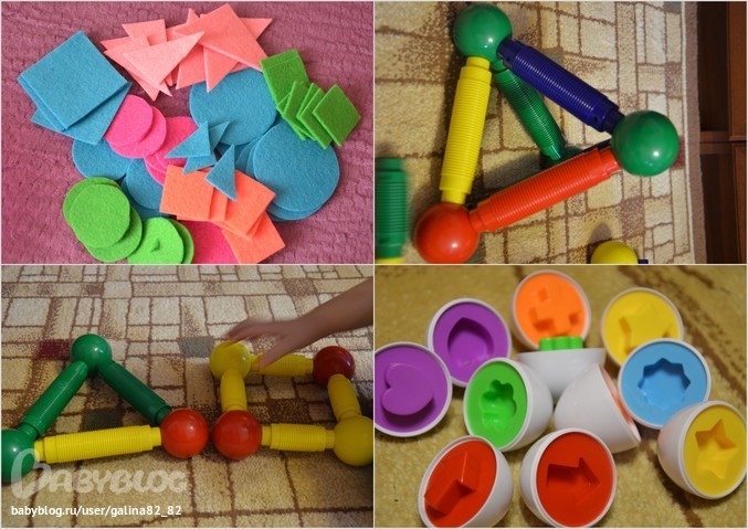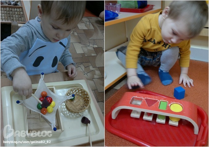 Собирали уже давно знакомые сортеры, вкладыши и пирамидки: