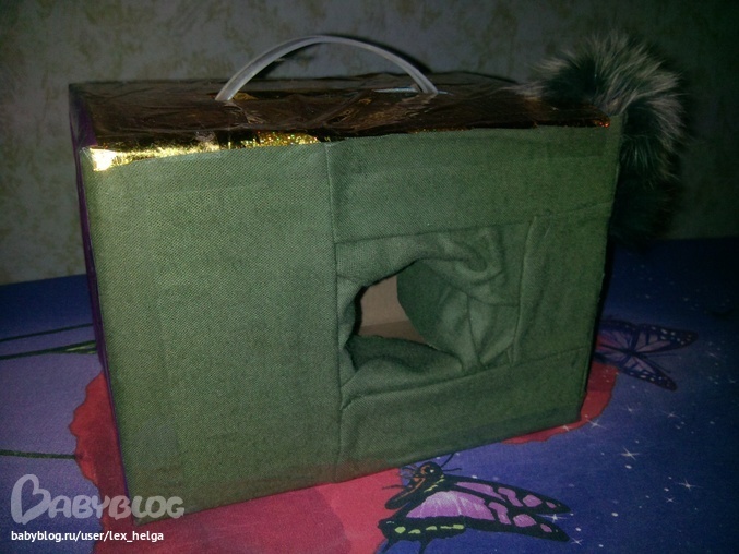 Игры и игрушки от 0 до 99 (Про игры и игрушки которые подойдут и большим и маленьким)Подсмотрела на ББ идею с коробочкой игровой и решила своему сыну такую же сделать. В гостях был крестник, поэтому творчество наше совместное. В дырочку буду закладывать всякие разные вещи и их нужно будет доставать из нее, а позже можно будет угадывать на ощупь что за предмет там лежит. Саму дырочку обклеила тканью, остальные стороны крестник уверенно обклеил цветной бумагой и, напоследок, нашла старые рукава от куртки и резанула кусок на "хвост". Кот все-таки в мешке коробке нашей)
