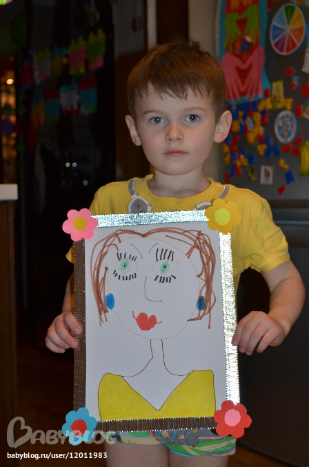 Один мальчик принес портрет мамы, конечно, Мишка тоже захотел меня нарисавать. СЕЛ и НАРИСОВАЛ!! САМ!