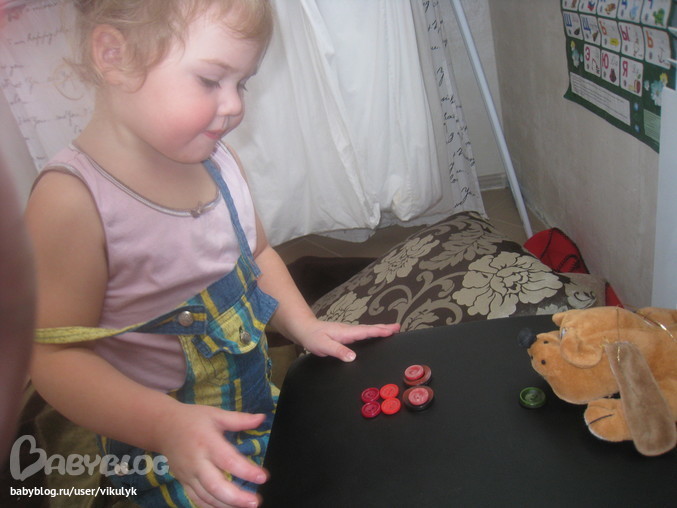 Затем нужно было рассортировать пуговицы по количеству дырочек 4 и 2.