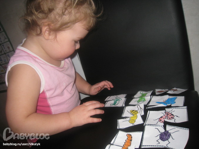 Ну раз такое дело, предложила найти половинки этих насекомых. Уж очень быстро нашли, видимо, совсем не на наш возраст задание.