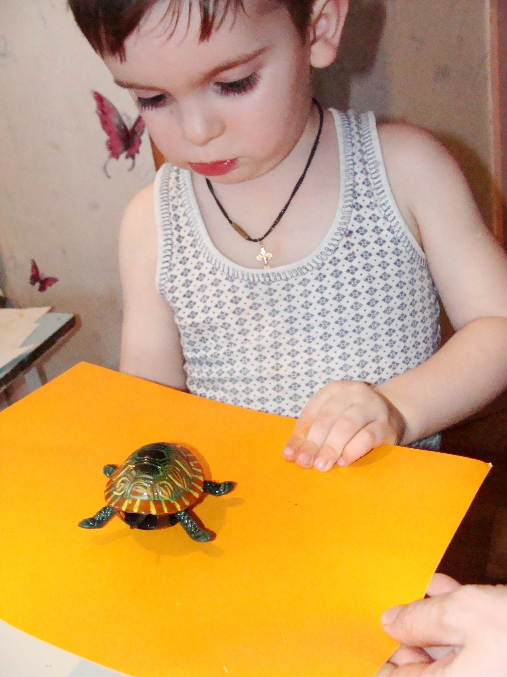 А это, даже не думала, что его так зинтересует. Это черепаха-магнит, она движется магнитом снизу, под картоном. Повеселились)) Я очень удивлялась, неужели черепашка живая,а Санька смеялся.