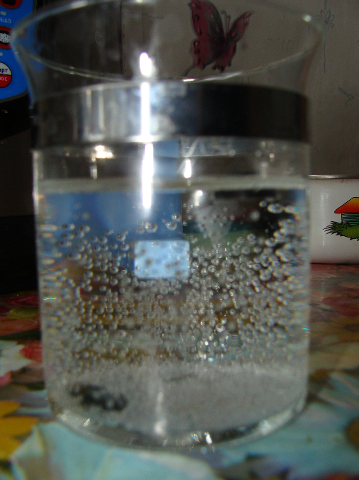 Через несколько секунд пузырьки воздуха облепляют пуговицы и поднимают их на поверхность. Санька удивился)) Хотя удивлять его становится все сложнее...