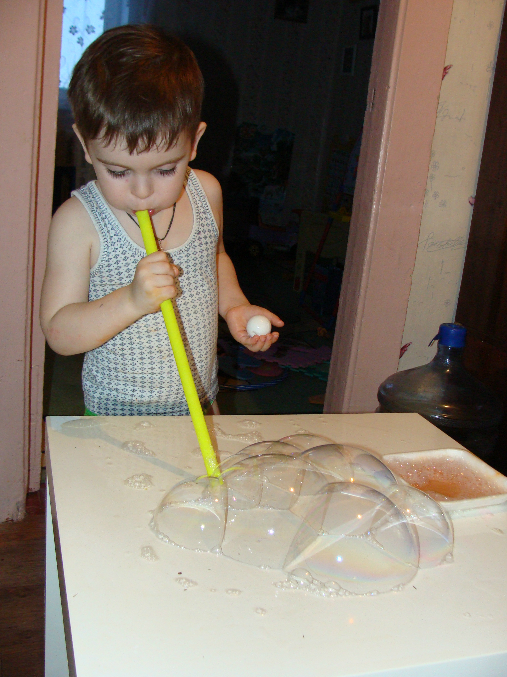 Очень весело! Советую. Потом, правда нужно отмыть сладко-мыльные стол, пол и ребенка))) У нас для опытов Сашин стол и стул выносится на кухню.