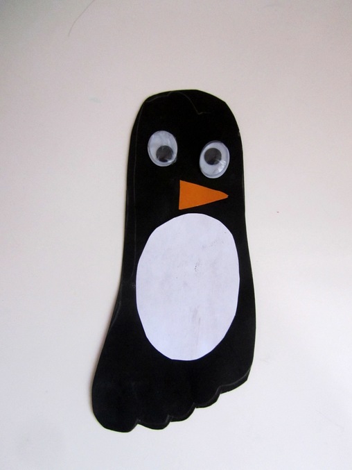 Вот такого пингвинчика сделали. Кирилл расскрашивал гуашью лист в черный цвет, потом обвели его стопу и наклеили глазки, носик и животик. Останется на память. Можно делать такого каждый год и потом посмотреть как с ростом стопы вырос и сам пингвинчик