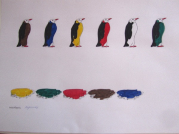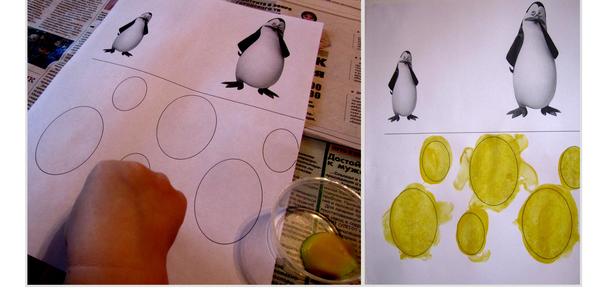 Творчество- рисуем пальчиками и подобрали в соответствие с размером яйца и пингвинов.