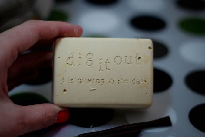 Правда собрать я его сама не смогла, пришлось ждать с работы папу, он собрал. Динозавтр оказался классным, достаточно большим и даже светился в темноте)