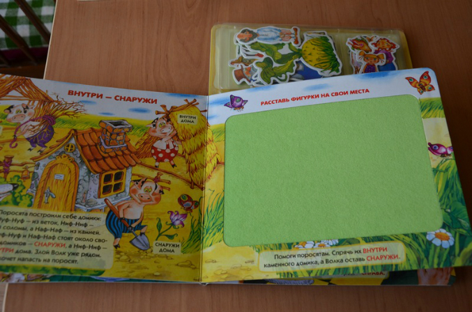 Ну и завершит наш пост вот эта непонятнокчемушная книга. Картинки дурацкие и то, что по идее должно хоть как-то держаться на фланели, совсем не держится на оной. Мало того, даже и не вмещается.... Будем избавляться. ))