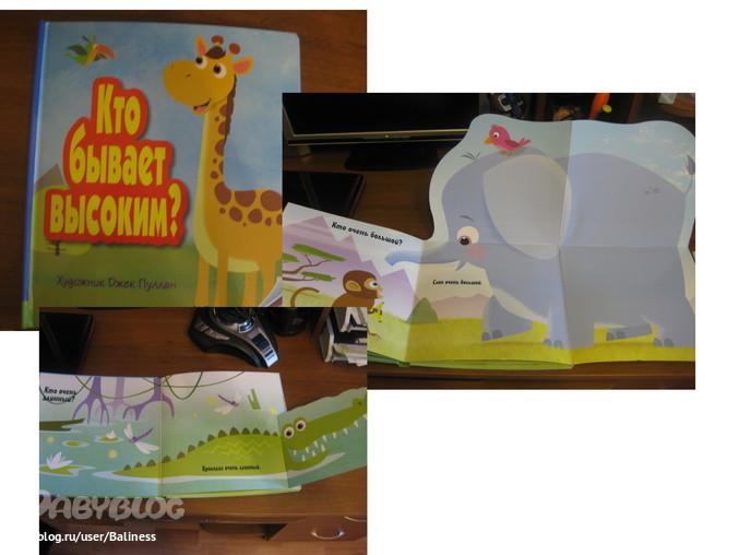 Книжка "Кто бывает высоким?" Хорошего качества. Интересные развороты. 185 р.