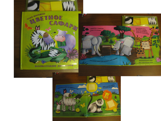 "чудо-магниты ЦВЕТНОЕ САФАРИ". Больше всех понравилась. Очень милые и красочные картинки, в которых не хватает несколько элементов. Малыш должен их найти и поставить на правильное место. С удовольствием теперь играем в нее за обедом и ужином. 176р.