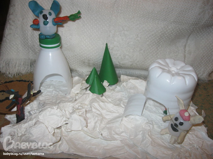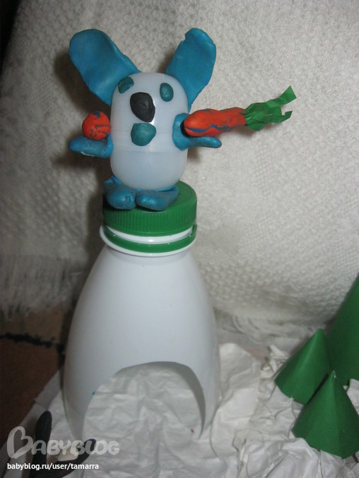 КонкурсыМои девчонки очень любят зайцев-кроликов,самых разных!И,конечно,они с большим удовольствием приняли участие в конкурсе!Полина делала белого,а Света бело-зелёного кролика.Вот наша композиция!