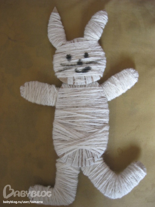 Ещё один кроль из шерстянных ниток.Идея с нитками из журнала,но мы её на кролика применили.