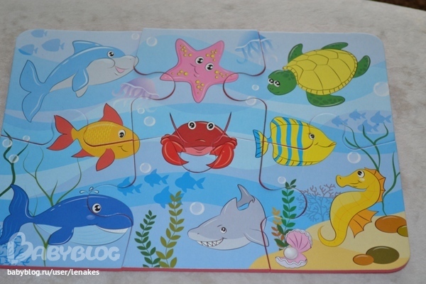 3. В море. Нам дали почитать. У нас нет ни одной книги из этой серии и очень зря. Настене понравилось собирать цепочку из морских животных, при этом всех легко можно запомнить.