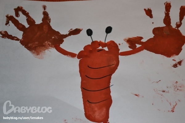 Краб из отпечатков ступни и ладошек (очень мне он нравится)