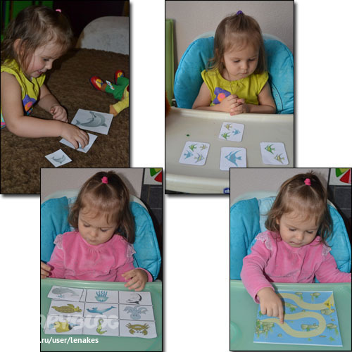 В понедельник, когда карточки были сняты, мы немного поиграли с ними. Клали фигурки наших морских животных на соответствующую фотографию.