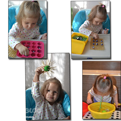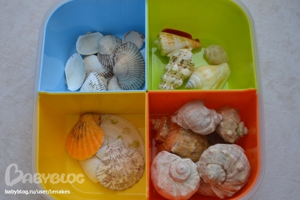 Настене очень понравилось перебирать ракушки. С ними, кстати, можно много игр придумать.