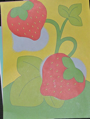 Апликации нам полюбились, клей мы уже пальцем не ковыряем и согласны с ним иногда расстаться, чтобы наклеить картинку. Коровку я переклеила (зачем-то...), а в землиничку почти не вмешивалась, просто в руки дала ему нужной стороной вниз, приклеивал сам, но сначала обсудили что куда клеить будем. Вот эти дешевенькие, но маленького формата.