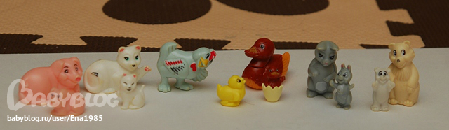 Искали каждому малышу маму, какие-то сам нашел, где-то я помогала, каждый малыш оч. радовался встрече с мамой и целовал ее, Миша тоже сидел и целовал меня, приятно так) Повезло нам с фигурками, у свекрови забрали, еще целая куча киндеров!