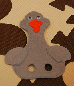 Было вдохновение и пошился гусь (спасибо Жениным выкройкам!). Белого фетра не было, второй гусь и бычок на очереди. Миша туда пальчики указательные просунул и топал, говорил топ-топ-топ))) ну я конечно сначала показала.