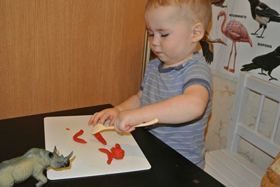 Лепили. Стеки для пластилина просто отличная вещь, стоят дешево (а качество приятное), и сколько удовольствия и пользы! Резали колбаску и кормили носорога))