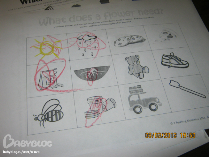 А еще с семенами мы поиграли в такую игру. Я выложила на листик семена, а сами пачки спрятала, и нужно было угадать от какого растения это семечко.