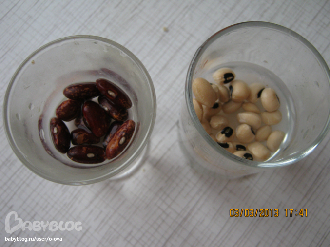А еще мы в стаканчиках проращивали фасоль - белую и красную...
