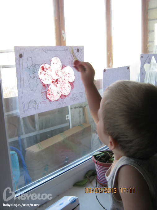 Ну, а для того, чтобы весна у нас чувствовалась в доме (а то на улице фиг пойми чего), мы разрисовали окна в комнате, где спим.
