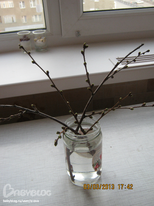 Нельзя, конечно, было обойти и практическую часть...Первое, что мы сделали - поставили в воду веточки, которые нашли на улице