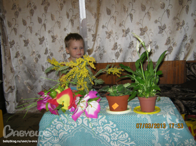 Соорудили настоящий прилавок, поставили на него комнатные цветы, мимозу нашу и искусственные цветы, а Кирюха у меня покупал. Упражнялся в счете и запоминал названия цветов.