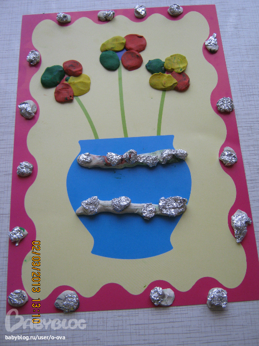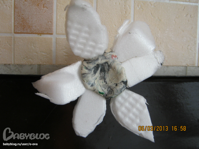 Это цветочек Кирюха делает. Серединка пластилин, а а лепестки из пластикового контейнера вырезаны
