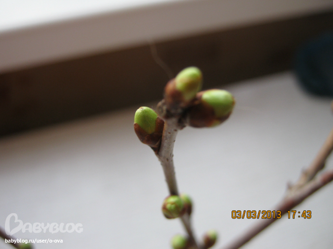 Это оказалась слива...я не сфоткала, но у нас потом на этой веточке стали появляться маленькие цветочки. Никогда такого не видела, если честно))))