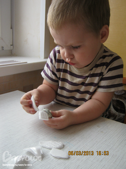 Поудивлялись, какие все семена разные. Больше всего Кирюше понравились баклажаны. У них семена розовые)))