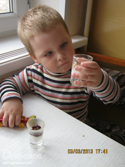 Потом у нас на этой фасоли такие длинные корни отрасли...И даже на некоторых фасолинах развернулись по три листика)))) Кирюша так радовался, но что то не так я сделала, видимо, и наша фасоль завяла в итоге(((