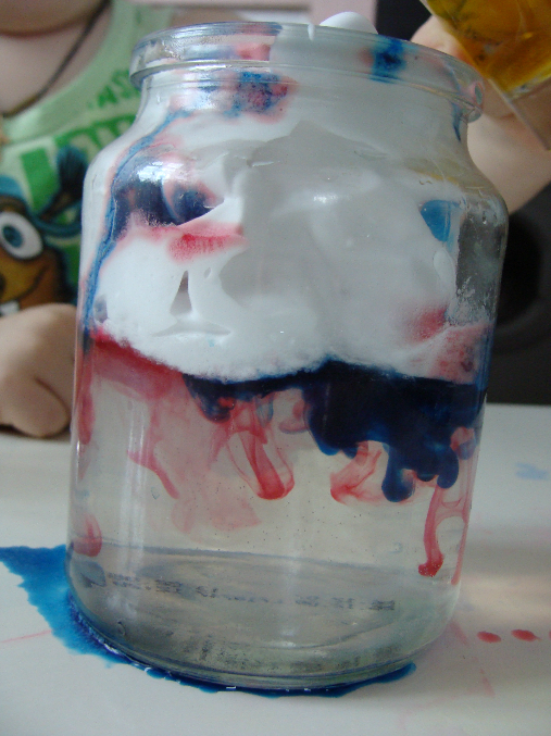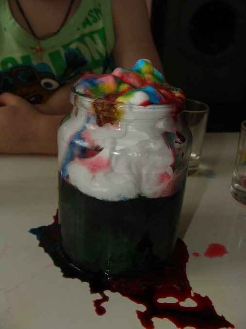 Бросаем таблетку алькозельцера и наблюдаем цветное бурление.