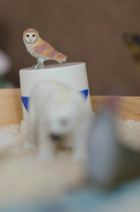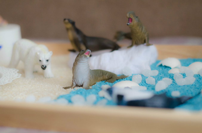 для коробочек использовала фигурки животных, лед разных цветов и форм, леденцовый сахар, крашеный и белый рис, яичную скорлупу, прозрачные стеклянные камешки