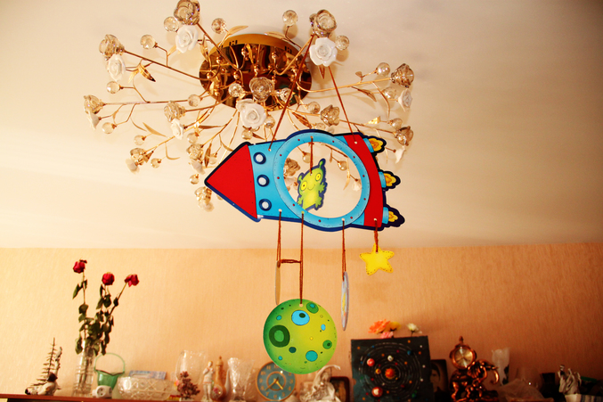 Началось все, конечно, с ракеты, запущенной под потолок квартиры. Нет, сначала она летала по всей квартире и приземлялась везде где только можно, пока наконец не прижилась на люстре)