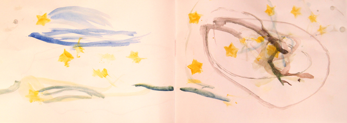Андрей вдохновенно рисовал космическое небо (о!!! черная краска! так ярко и здорово!!!)