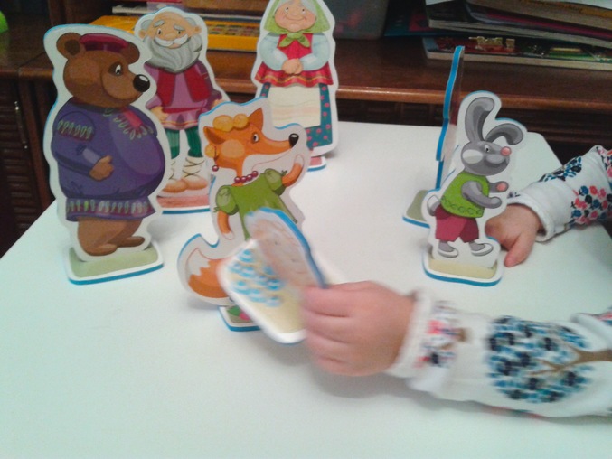 тоже такой есть:)). Сказку сидит слушает, а потом просит фигурки и зачем-то снимает у всех подставки))
