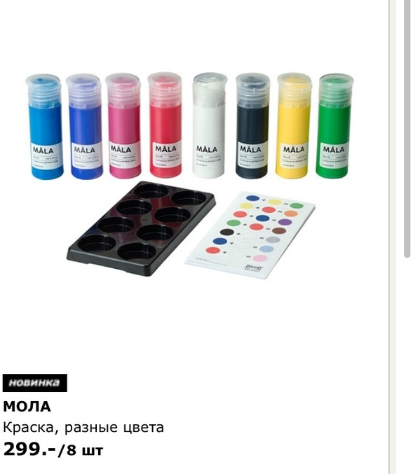 В Икее не так давно вышел новый набор красок. Раньше это были 6 квадратных коробочек, а теперь 8 туб.