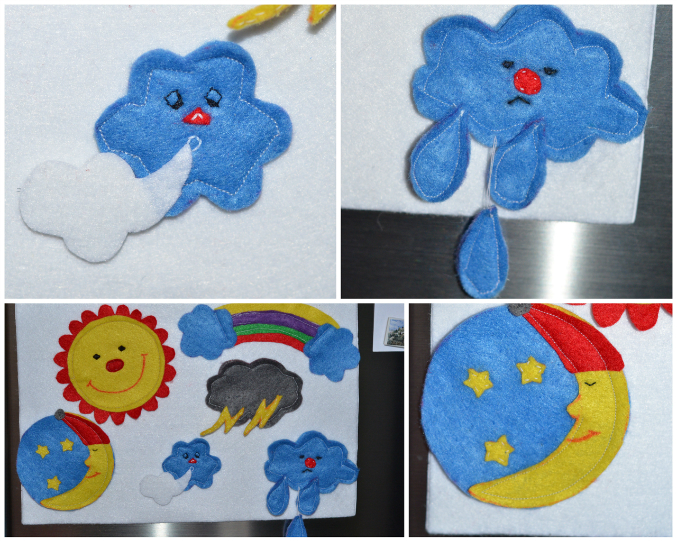 Я купила , сделен по аналогии с самоклеющейся бумагой и тоже одна сторона клейкая...далее понятно: магниты приклеиваем к той "бумажной" стороны фетра и получаем мини-поле - основу для метеостанции, которую можно спокойно повесить на холодильник! Сами фетровички держатся у меня на фетре без всего, даже липучки не нужны.