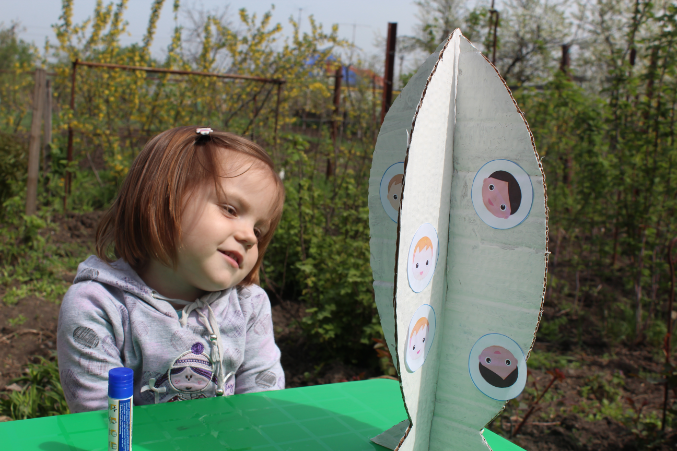 Двигаемся дальше! теперь переходим к космонавтам! Приклеиваем иллюминаторы с космонавтами на картонную ракету!