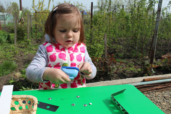 А вот и оно ) С помощью фигурного дырокола Алисик делает звездочки!