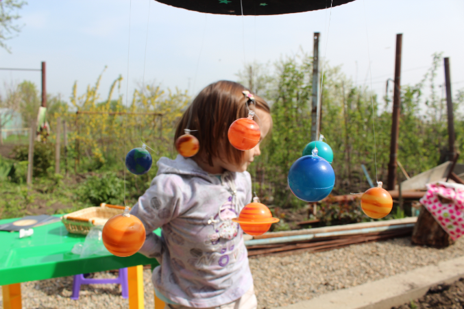 А после мы сделали свою солнечную систему ) Она пока без Солнца, но его роль сегодня вечером выполнит большой круглый светильник )