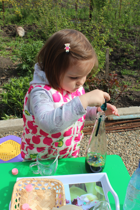 Вот и я решила пополнить коллекцию ее фокусов и предоставила ей материалы для создание космической бутылки! Она и правдда получилась волшебной )