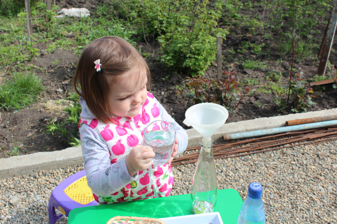 Налить еще воды из бутылочки, а затем немного растительного масла.
