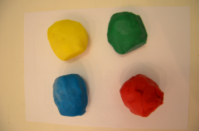 Рецепт 1 стак муки1/2 стак соли6 столовых ложек лимонного сока1 стак воды1 стол ложка растит маслакрасителиСмешать муку и соль прямо в сковороде, добавить воду с лимонным соком, масло и краситель. Хорошо перемешать. Варить на среднем огне примерно 5 мин до тех пор, пока масса не затвердеет. Снять с огня, немного помять руками. Хранить в хорошо закрываевом контейнере (мы обычно храним в холодильнике в зип - пакете)