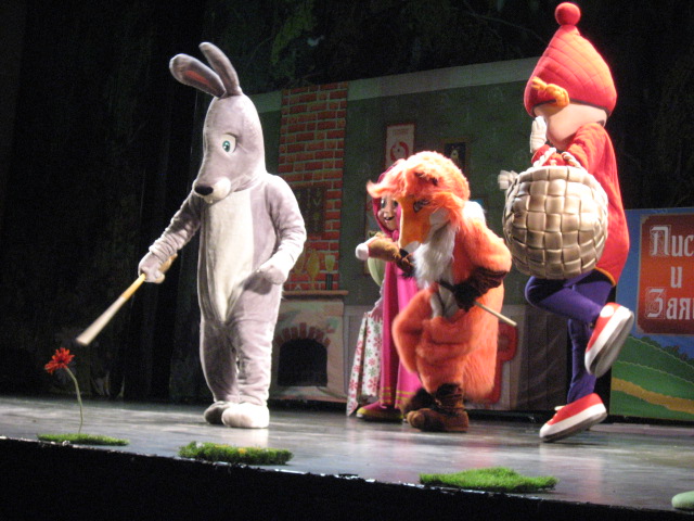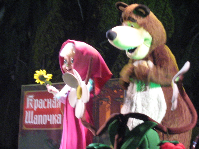 Дети пришли на праздник увидеть героев а там как папа сказал перемешали сказок " машу и медведя", "Алёнушку", "красную шапочку"...( еще при желание фоткатся за деньги) для нашей дочки 2,10мес было нормуль их типо представление но чуть взрослым деткам совсем было не интересно, хорошо не долго длился примерно 45мин...